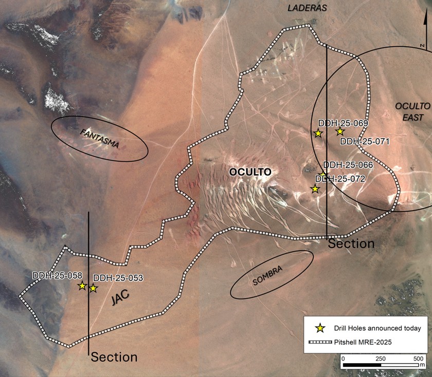 Dave O’Connor, Chief Geologist, commented, “Drilling at Oculto East continues to confirm broad intervals of gold mineralization to the east, while results at JAC reinforce the presence of thick, continuous silver mineralization to the west. Together, these results highlight the strength and continuity of the Diablillos system and its potential for significant additional Mineral Resource expansion.”
