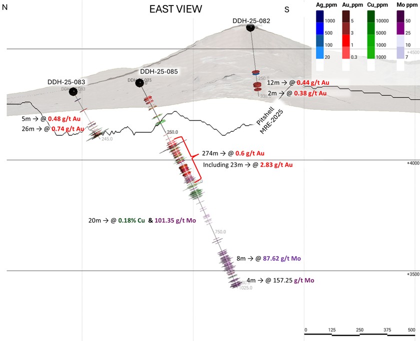 Dave O’Connor, Chief Geologist, commented, “DDH 25-085 demonstrates mineralization to more than one kilometre depth and provides clear geological evidence of a vertically extensive system. The deeper copper-molybdenum-gold mineralization is characteristic of fertile porphyry environments, and the alteration we encountered is consistent with the upper portions of a significant intrusive center. These results enhance our geological model and highlight substantial additional exploration potential across the property.”